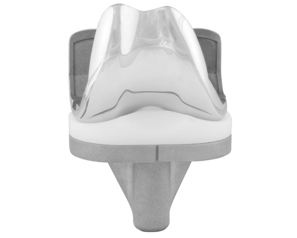 - Diseñada utilizando tecnología avanzada de modelado por computadora para reproducir la cinemática natural de la rodilla, adaptándose al retroceso femoral anatómico y a la rotación interna.